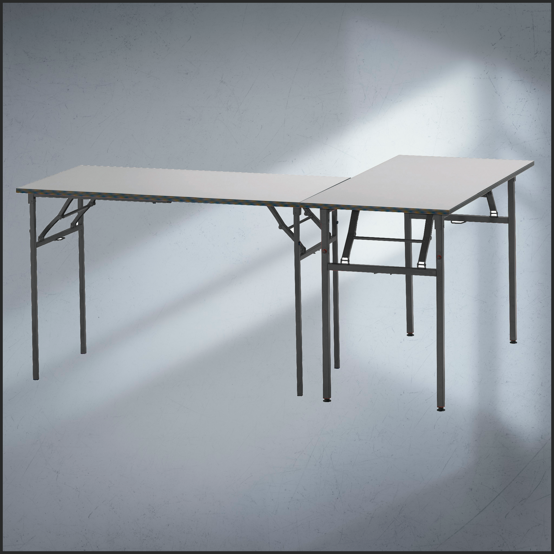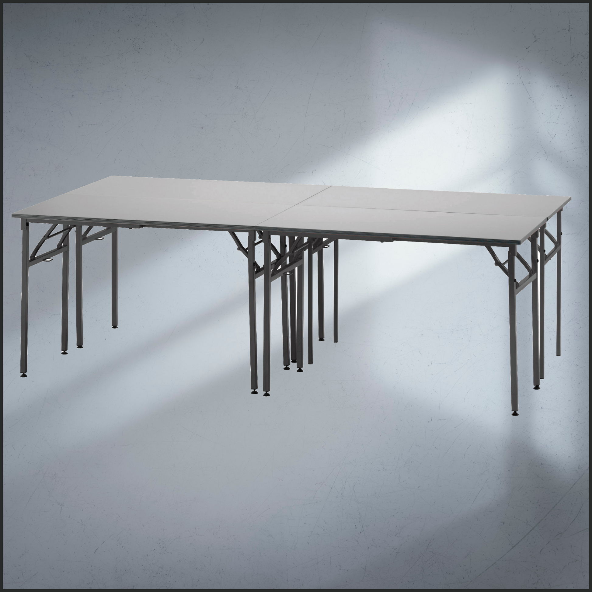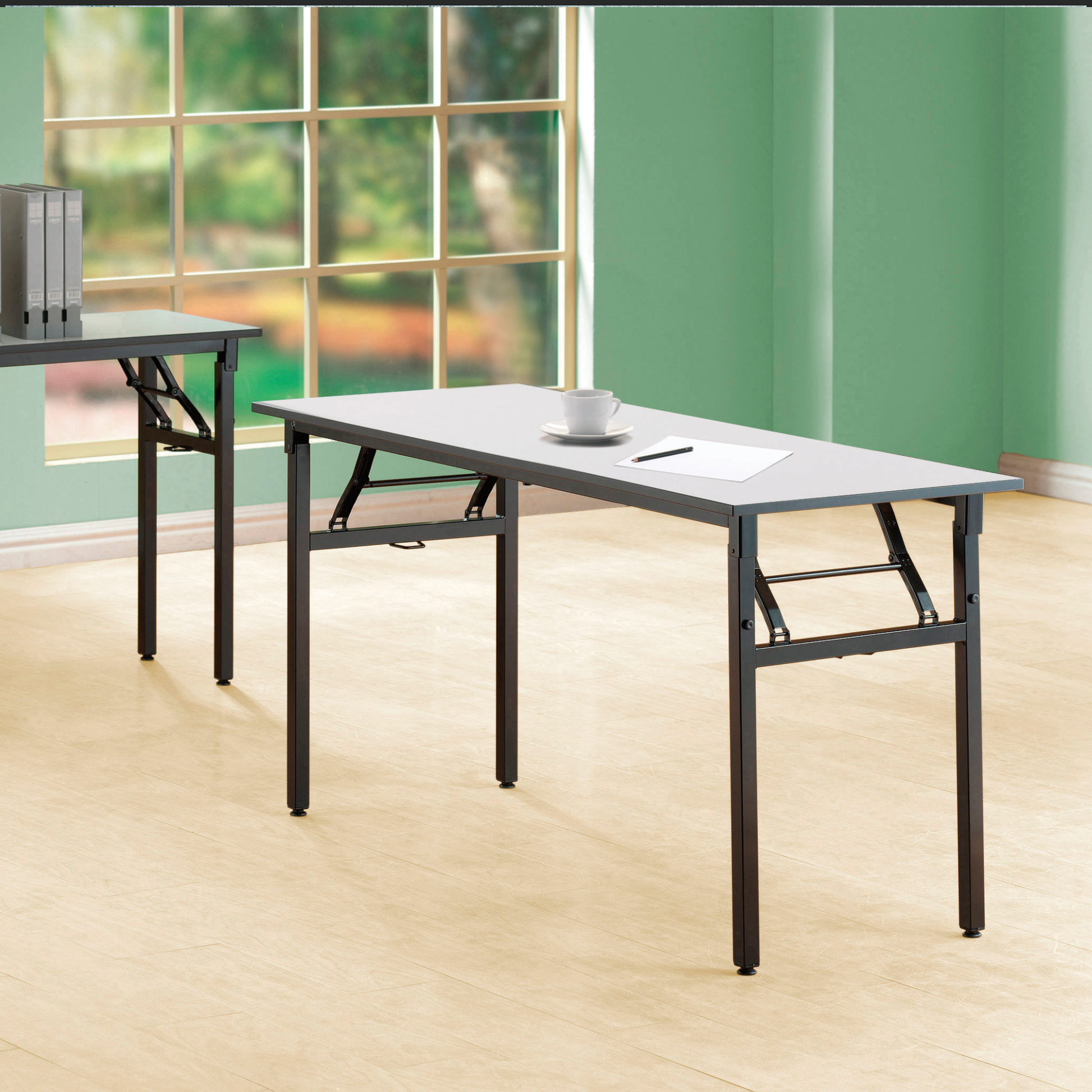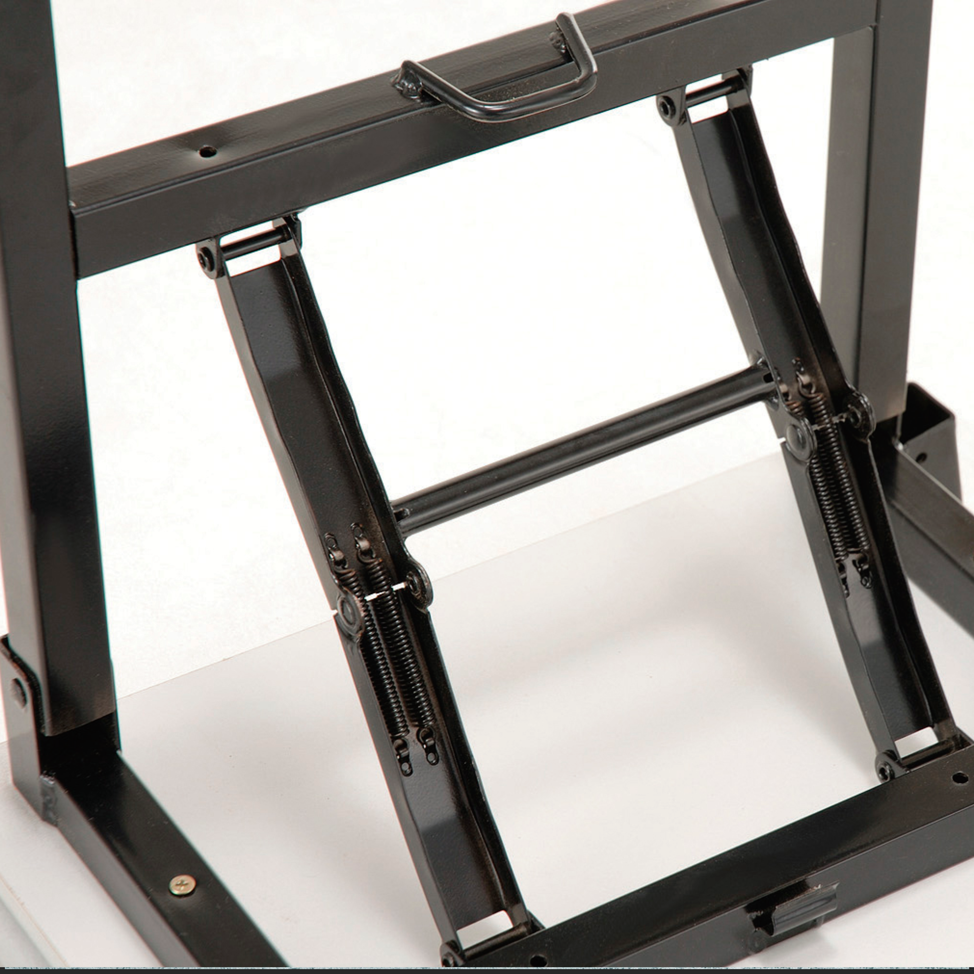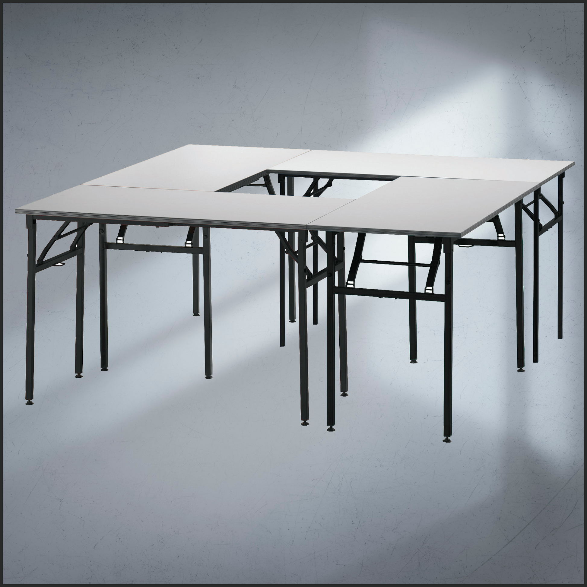 - Black foldable metal legs.